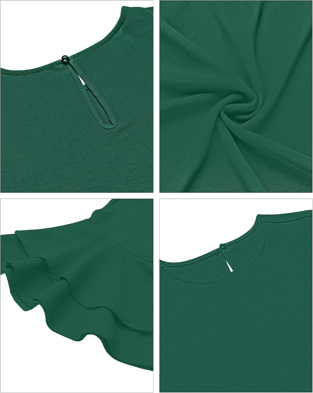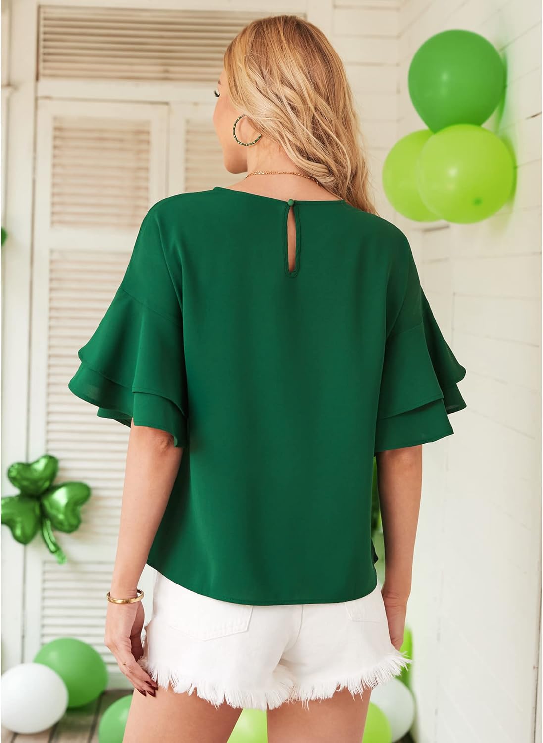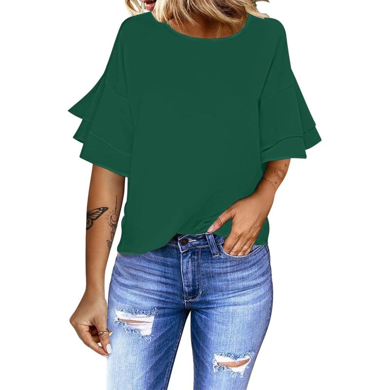 luvamia Women’s Casual 3/4 Tiered Bell Sleeve Crewneck Loose Tops Blouses Shirt(A1 Alpine Green)