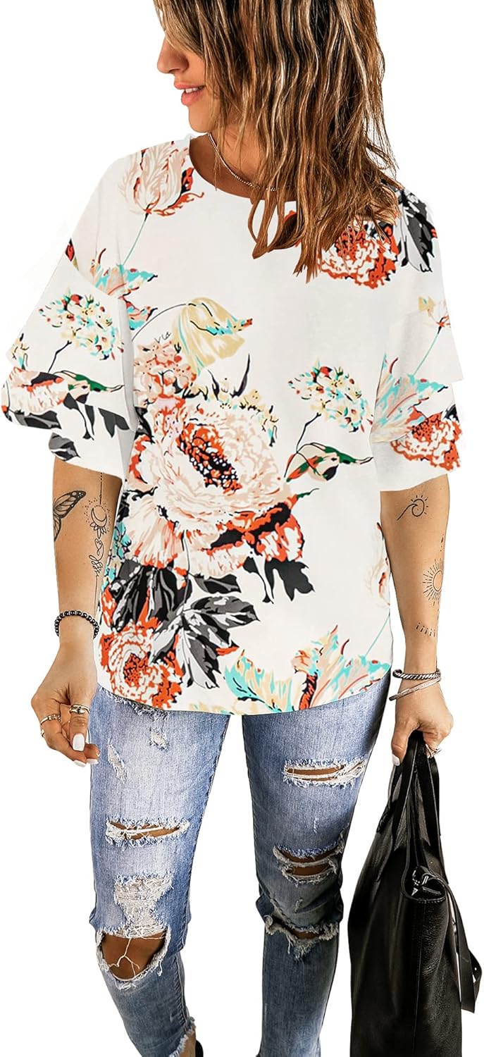Get the luvamia Women’s Casual 3/4 Tiered Bell Sleeve Crewneck Loose Tops Blouses Shirt(A2 Floral Pirnt Brilliant White) you’ve been eyeing at a discounted price during our seasonal sale event.