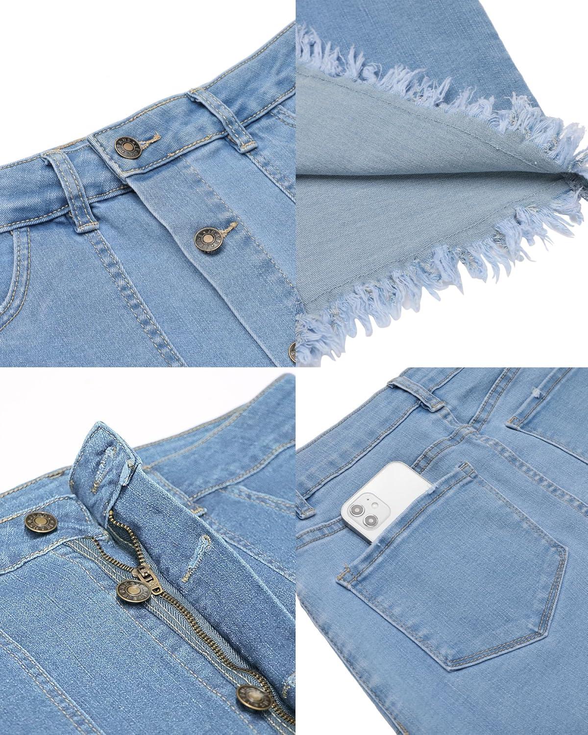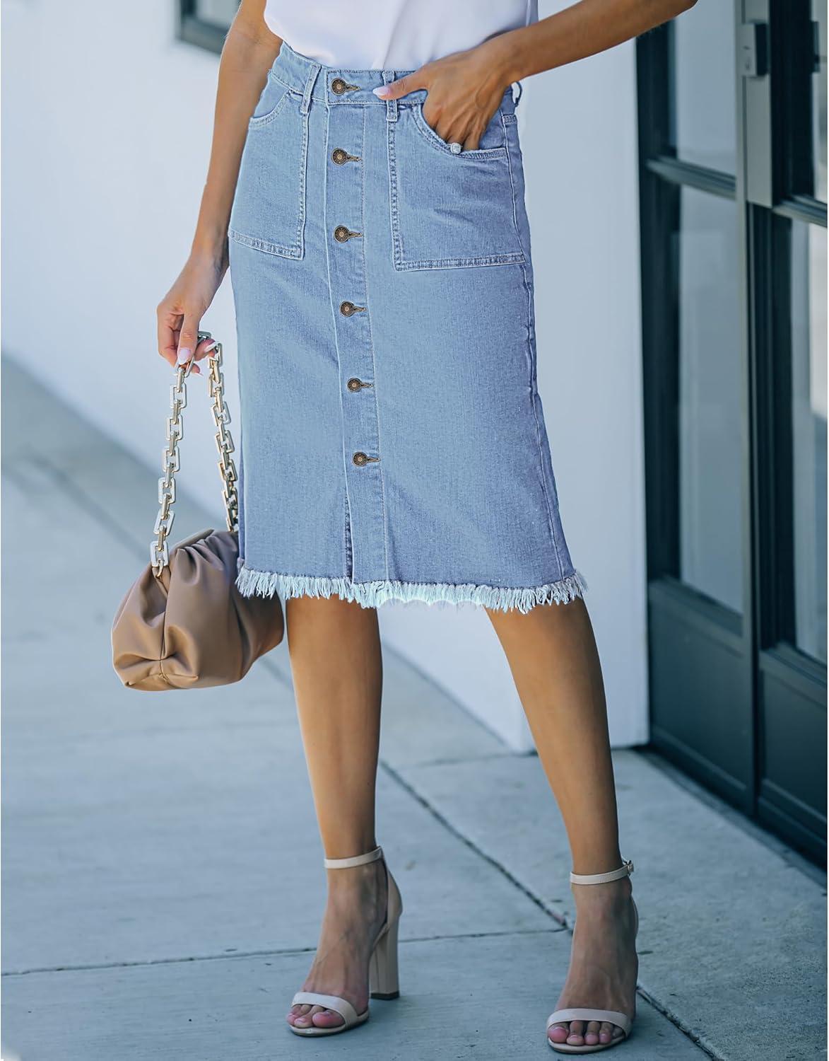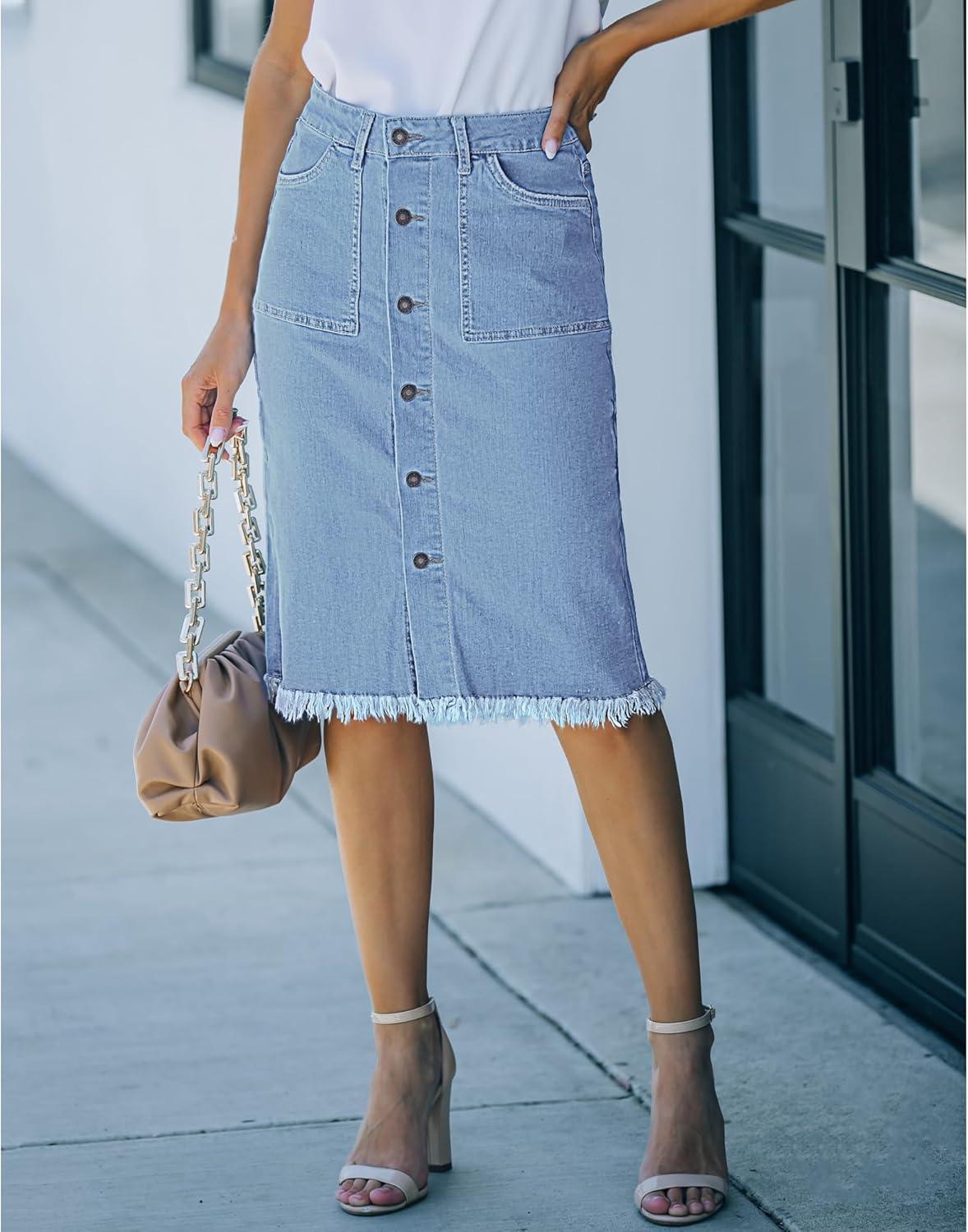 Don’t miss out on our limited-time offer: buy luvamia Women’s Casual Mid Rise Button Down Frayed Raw Hem Denim Jean Midi Skirt(Cool Blue), get {accessory} 50% off!