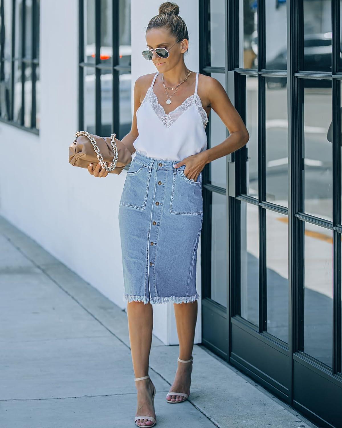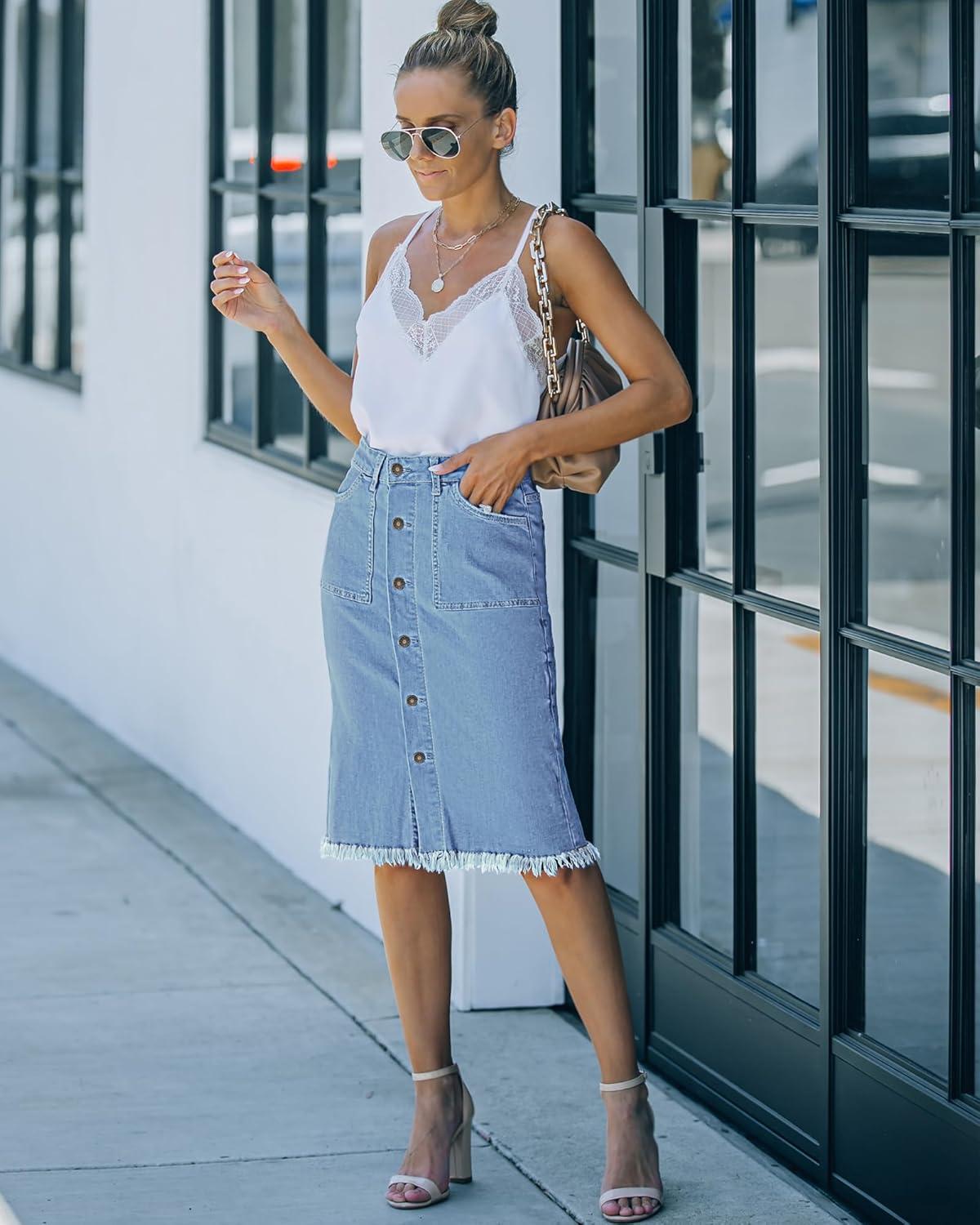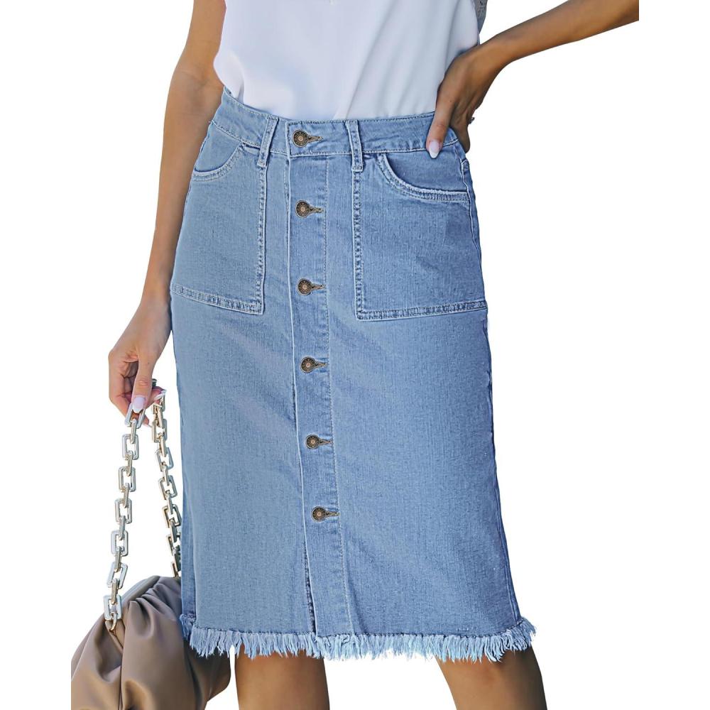 Don’t miss out on our limited-time offer: buy luvamia Women’s Casual Mid Rise Button Down Frayed Raw Hem Denim Jean Midi Skirt(Cool Blue), get {accessory} 50% off!