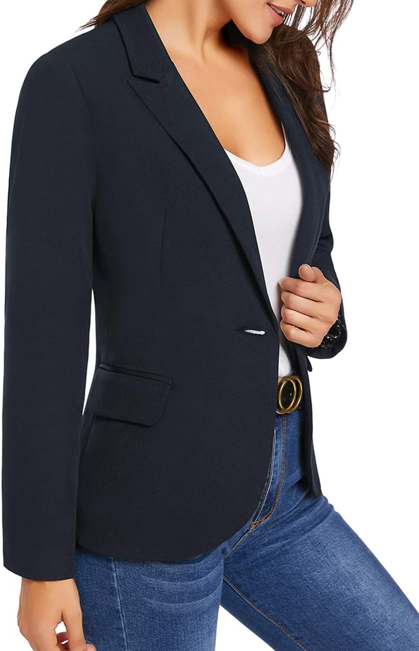 luvamia Women's Long Sleeve Formal Notch Lapel Button Down Blazer Pockets Jacket(B Navy Blue-1-one Button)