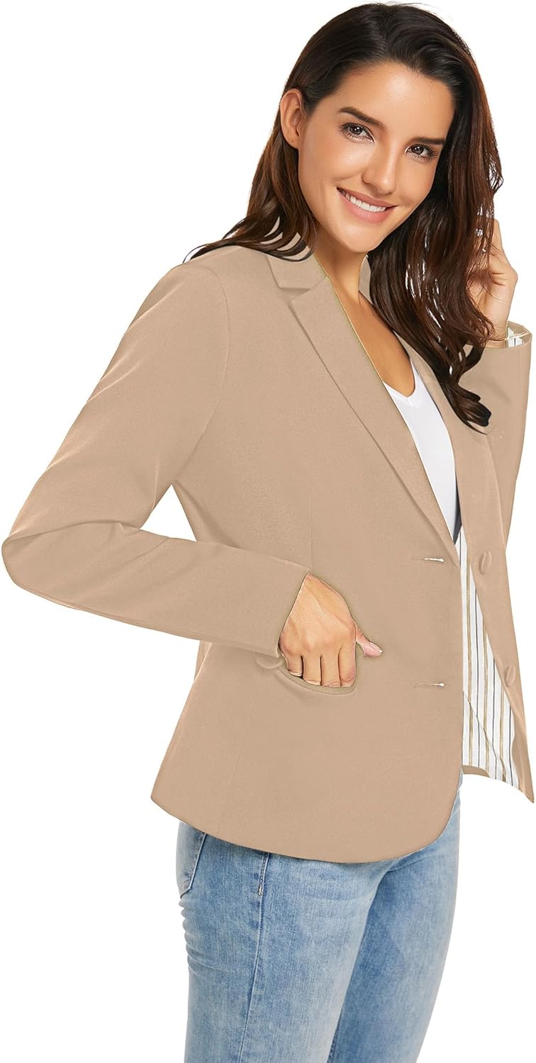Save up to 40% on luvamia Women’s Long Sleeve Formal Notch Lapel Button Down Blazer Pockets Jacket(Beige W Striped Lining) styles during our end-of-season sale.