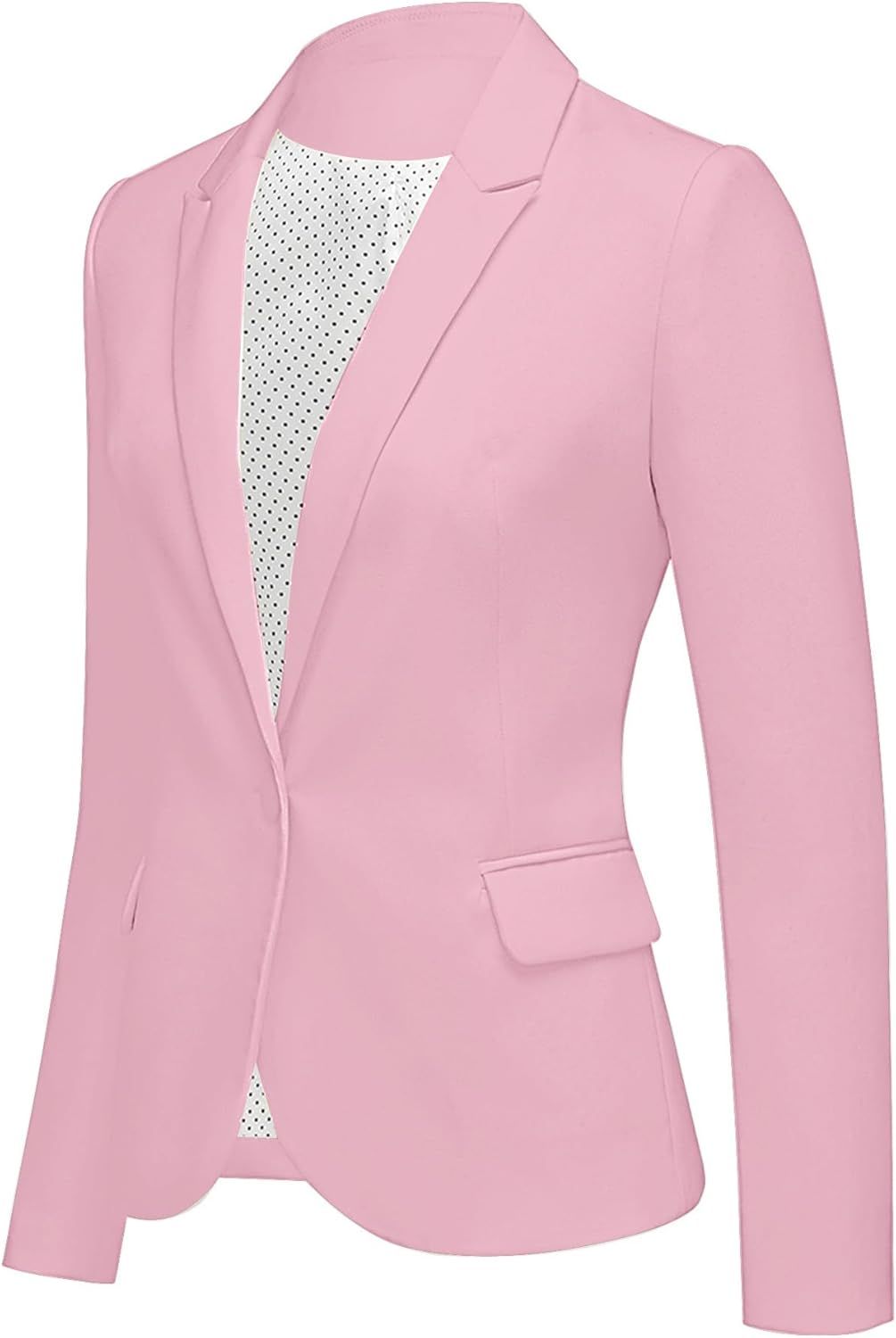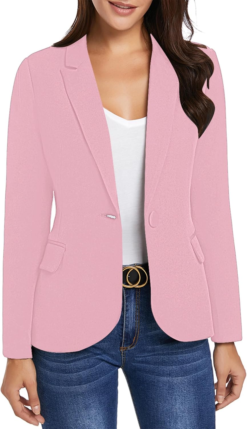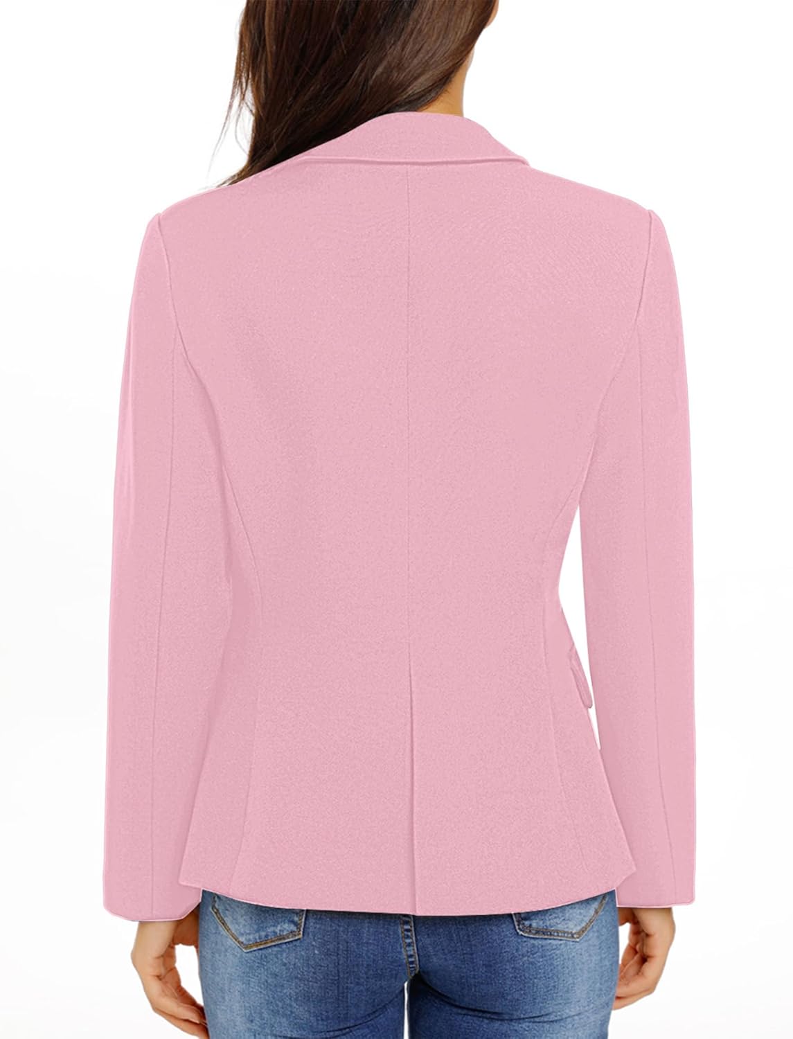 luvamia Women's Long Sleeve Formal Notch Lapel Button Down Blazer Pockets Jacket(Candy Pink)