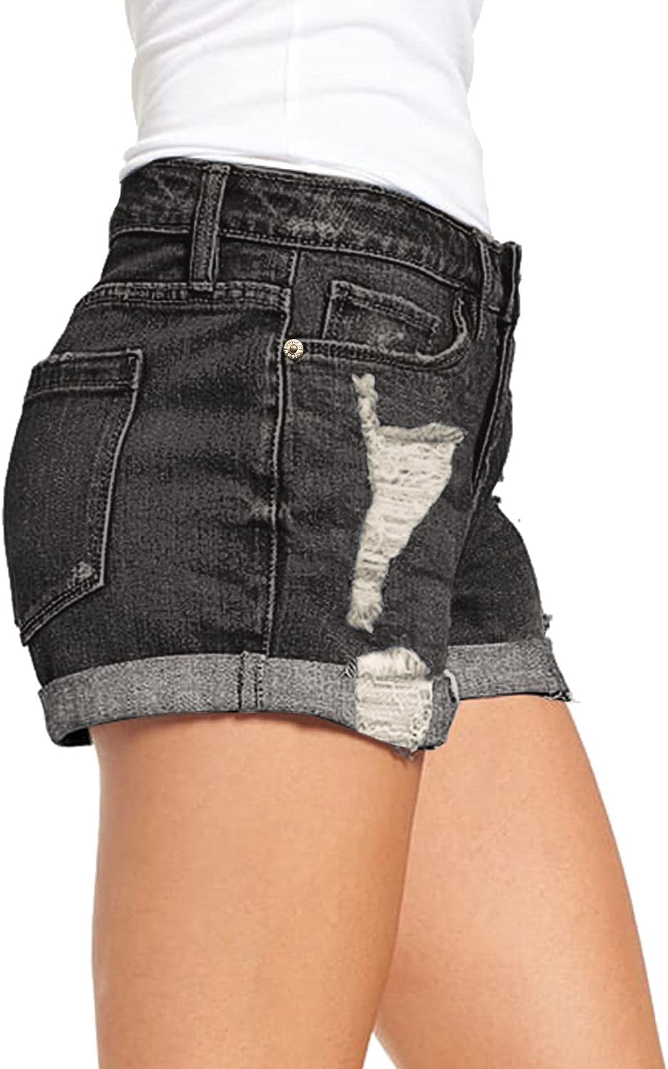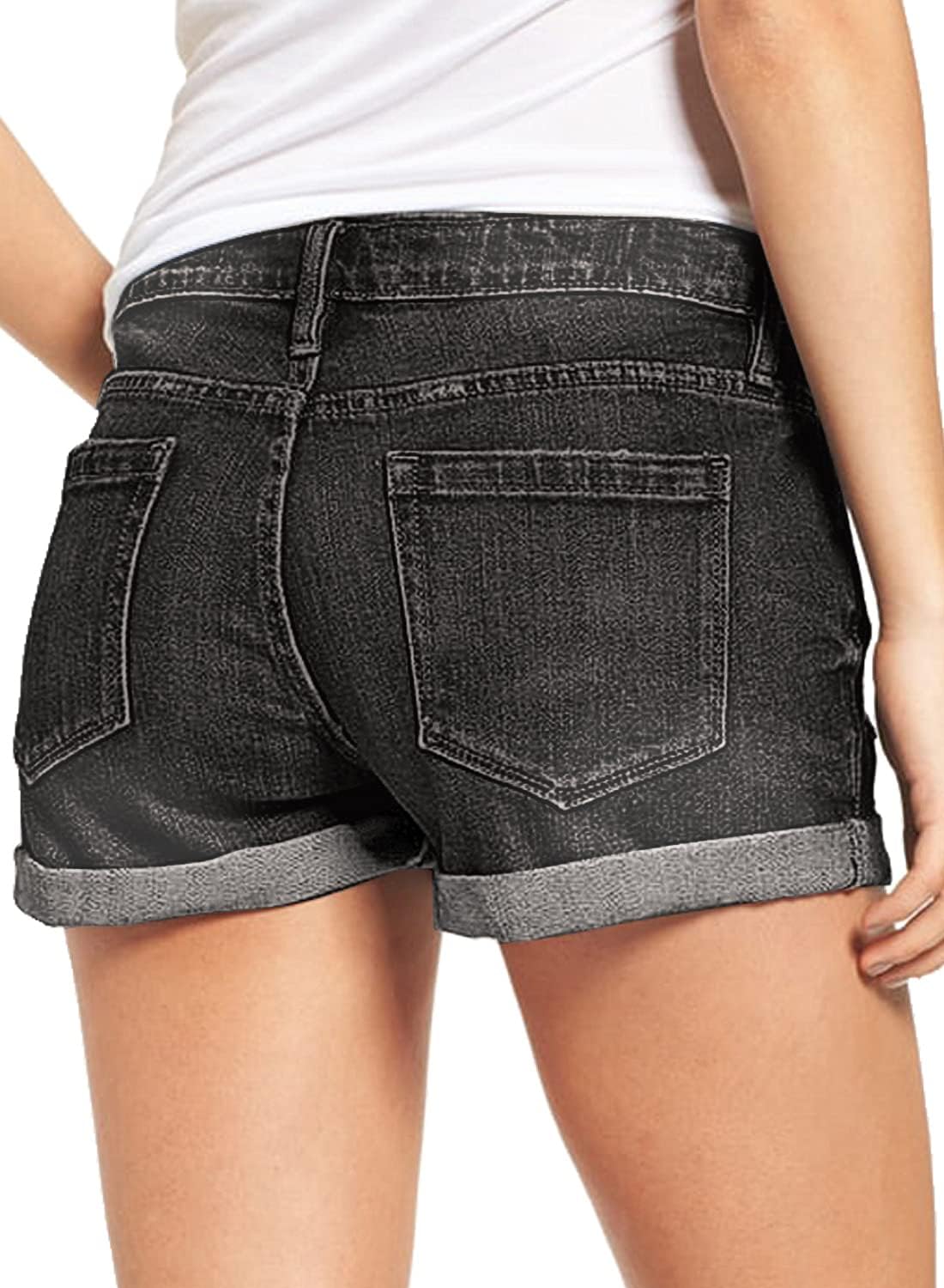 luvamia Womens Ripped Denim Jean Shorts High Waisted Stretchy Folded Hem Short JeansB Dark Gray
