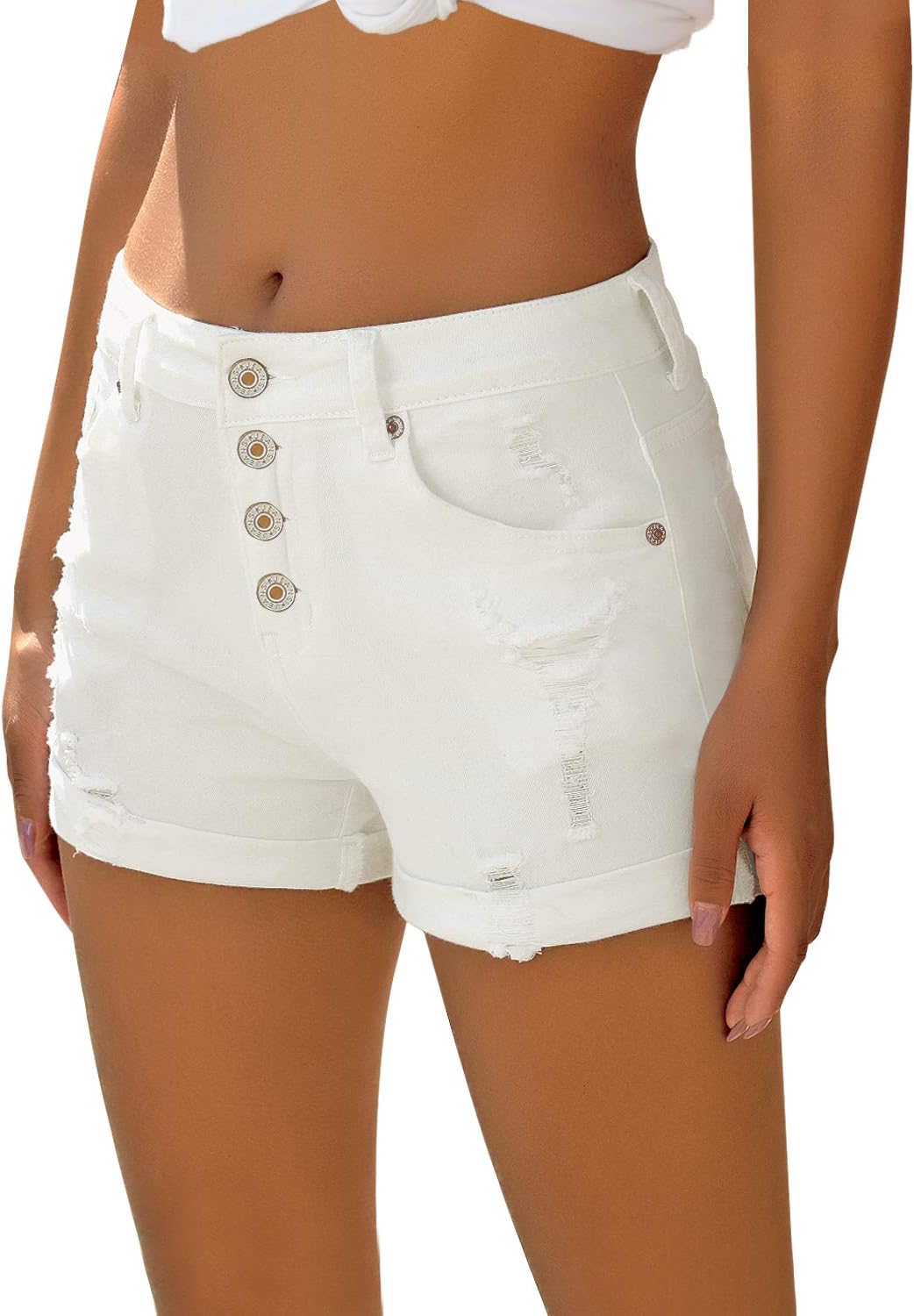 Get the luvamia Women’s Ripped Denim Jean Shorts High Waisted Stretchy Folded Hem Short Jeans(B Sparkly White) you want at a price you can afford with our markdown sale.
