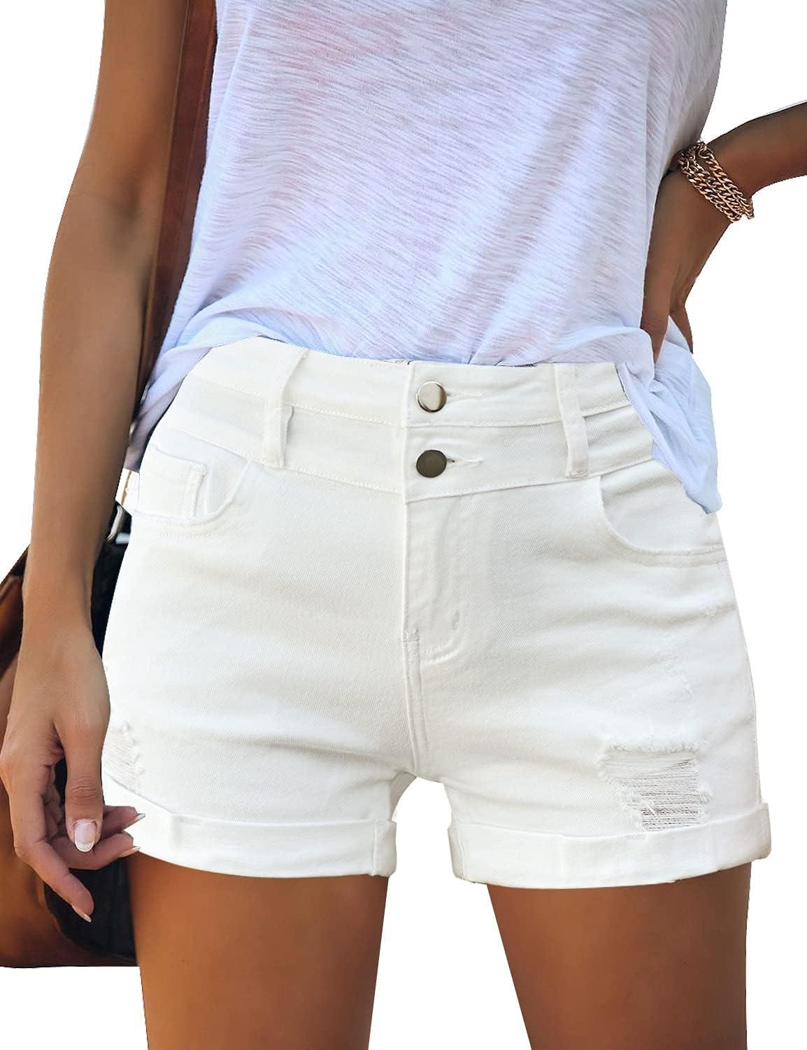 Get the luvamia Women’s Ripped High Waisted Denim Shorts Stretchy Cuffed Hem Jean Shorts(M Chalk White) you want at a discounted price during our markdown sale event.