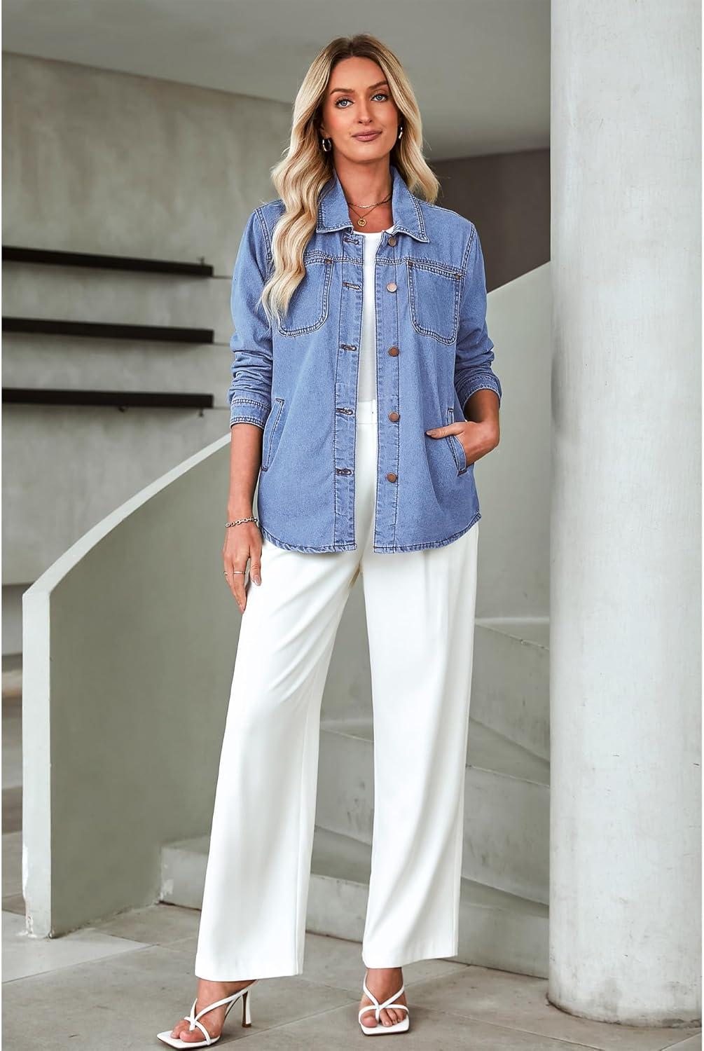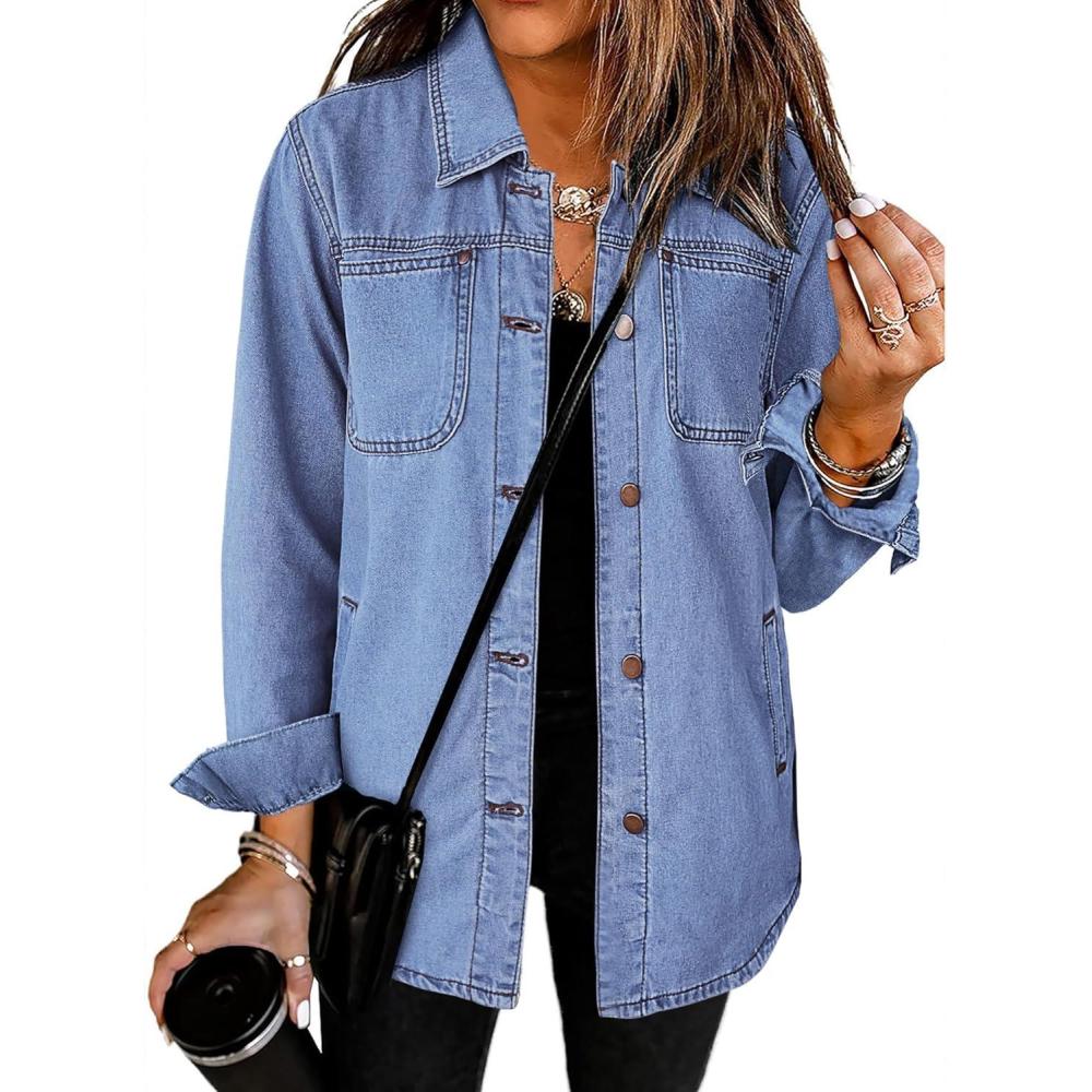 imageluvamia womens Women Denim JacketsTurquoise Blue