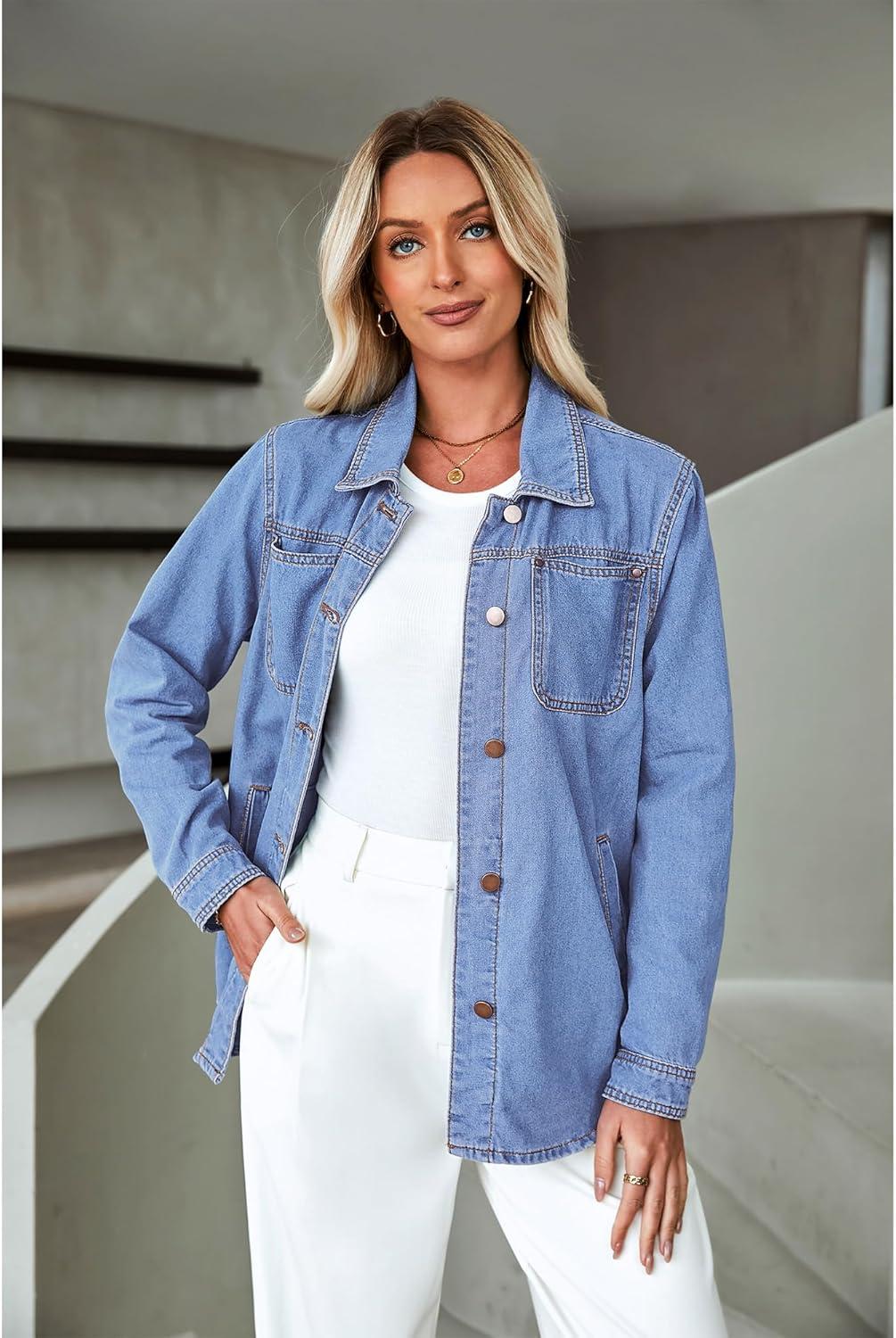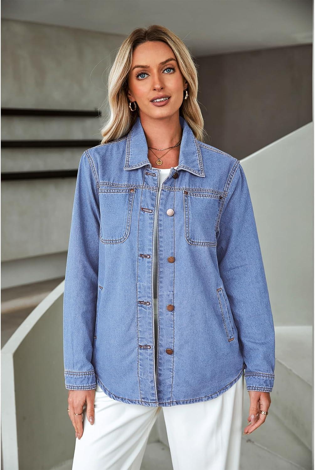luvamia womens Women Denim Jackets(Turquoise Blue)